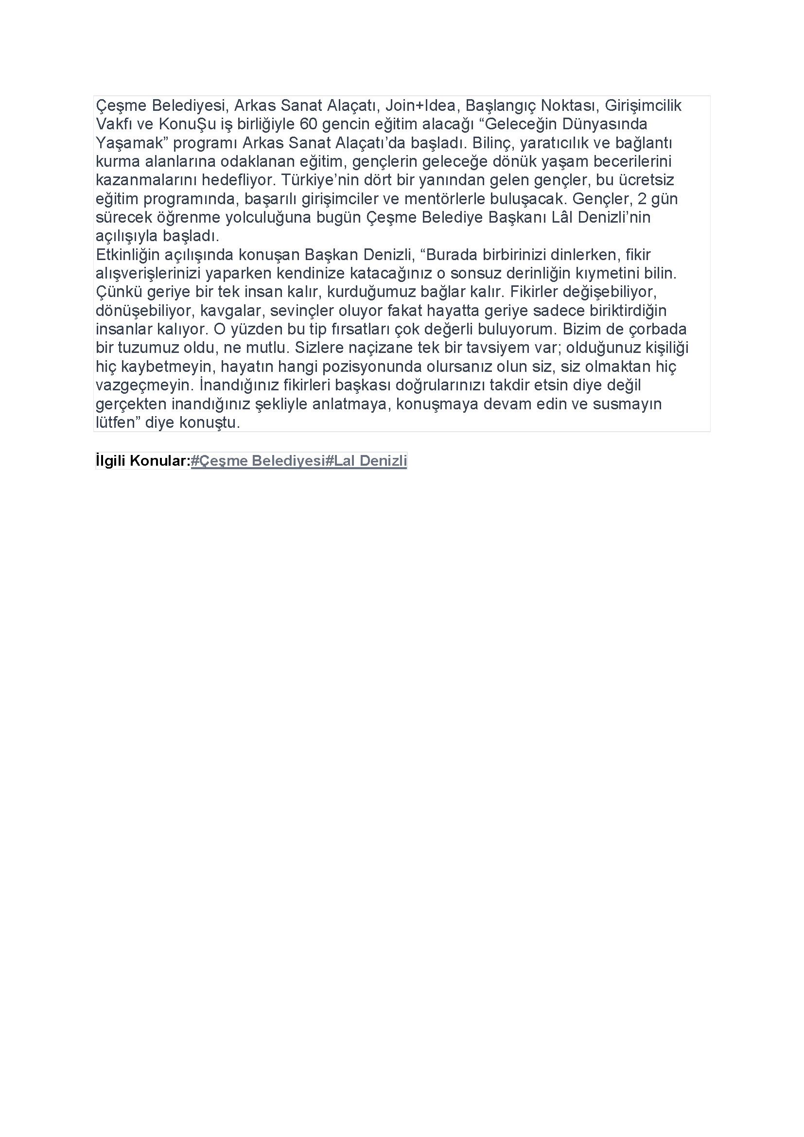 Çeşme'de 'Geleceğin Dünyasında Yaşamak' Programı Başladı