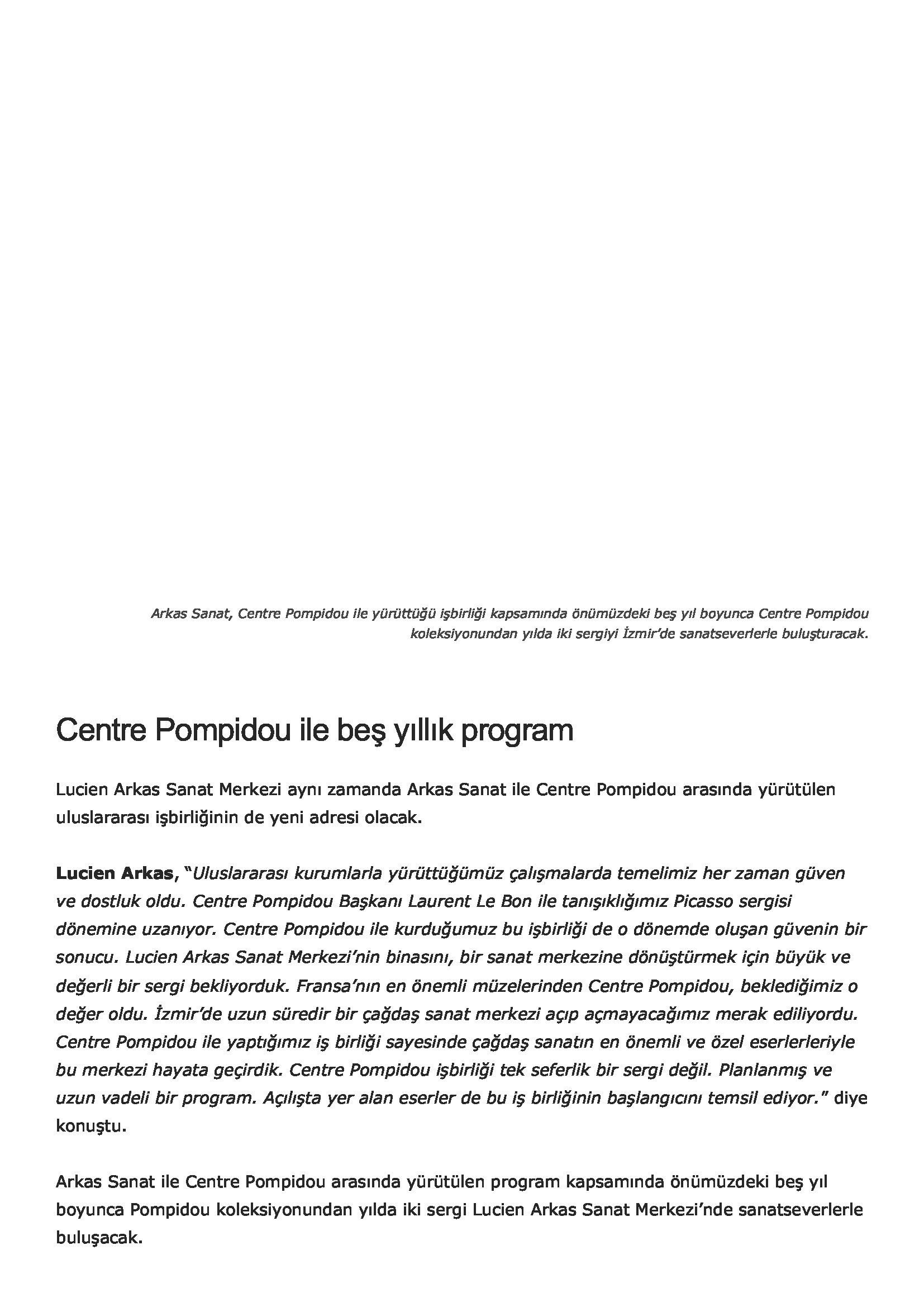 Lucien Arkas Sanat Merkezi, Centre Pompidou'yu İzmir'e Taşıyor