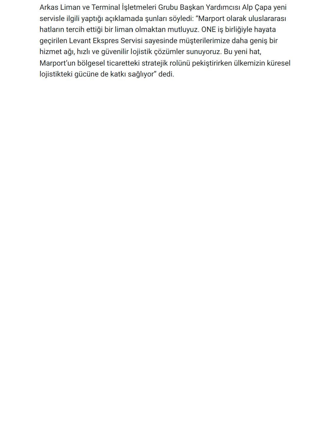 Marport, ONE İle Yeni Bir Uluslararası Servise Ev Sahipliği Yaptı