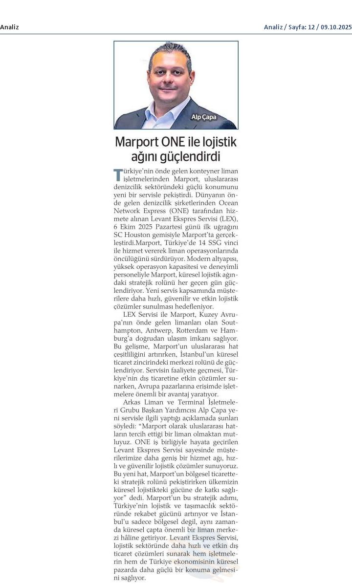 Marport, ONE ile Yeni Bir Uluslararası Servise Ev Sahipliği Yaptı