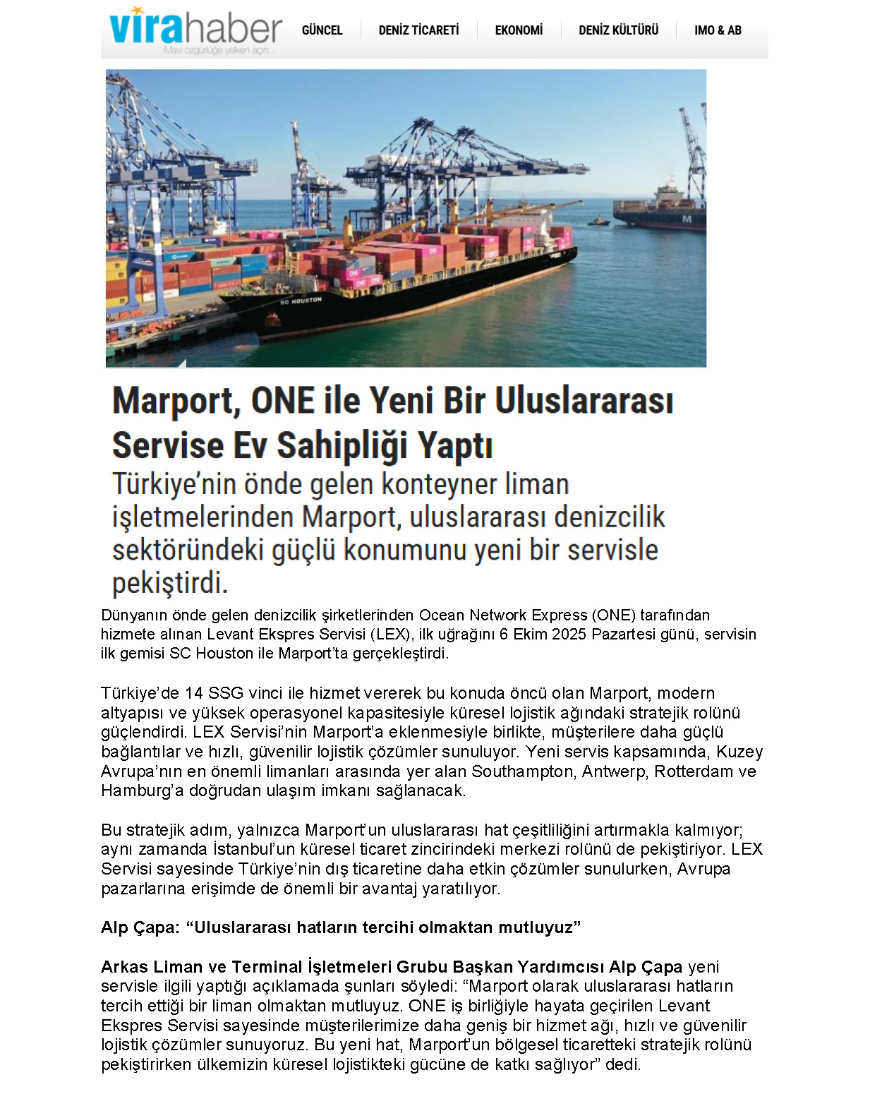 Marport, ONE İle Yeni Bir Uluslararası Servise Ev Sahipliği Yaptı