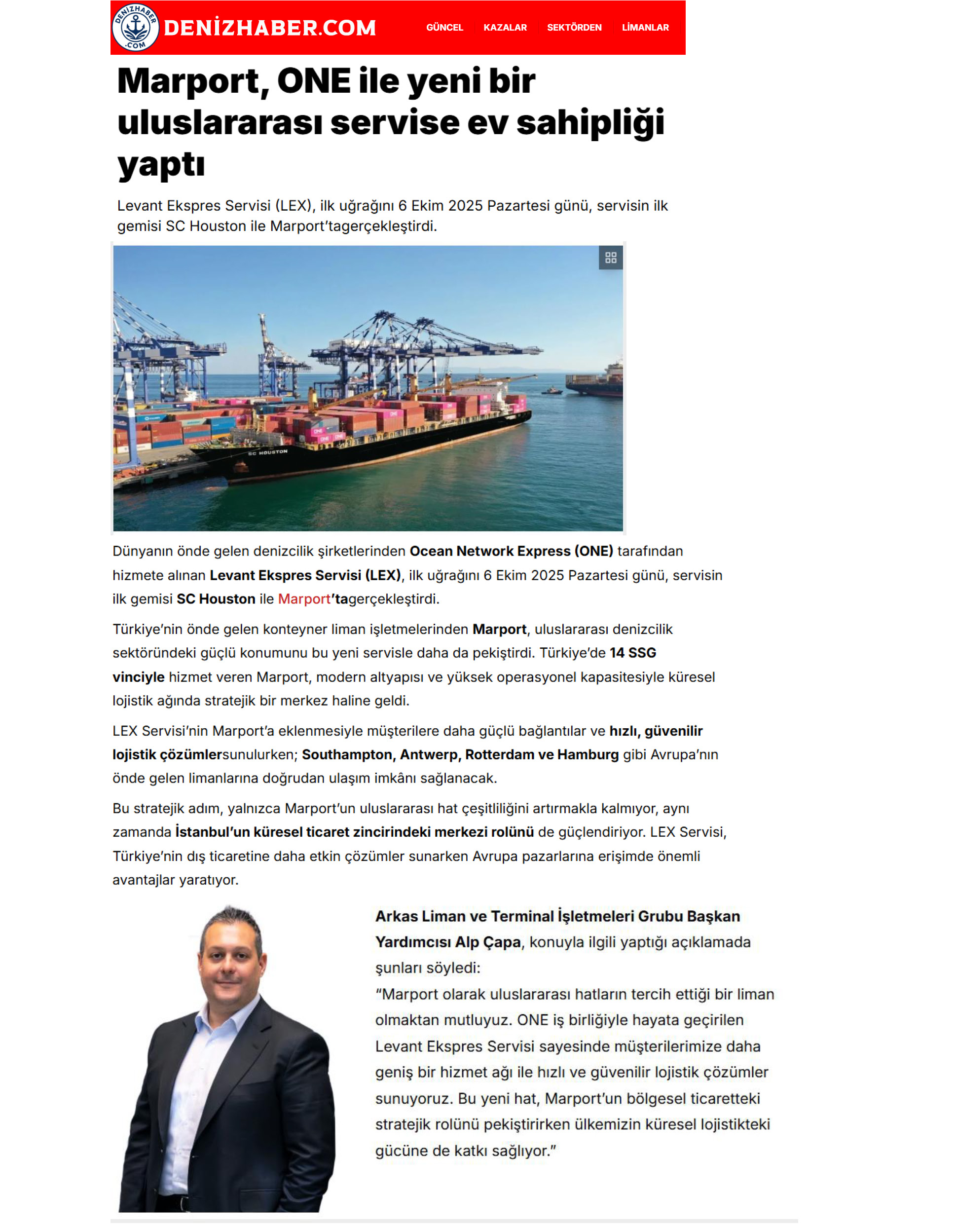 Marport, ONE İle Yeni Bir Uluslararası Servise Ev Sahipliği Yaptı