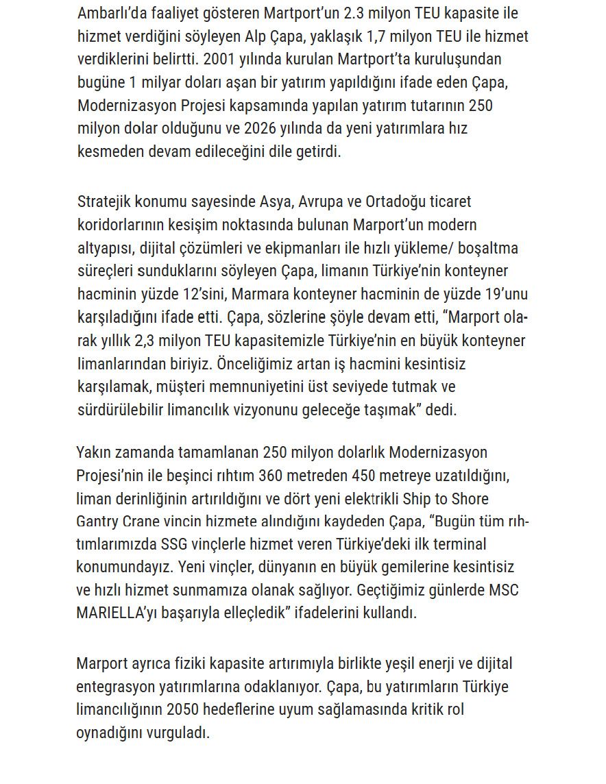Marport, Hizmetlerini Yeni Servisle Güçlendiriyor
