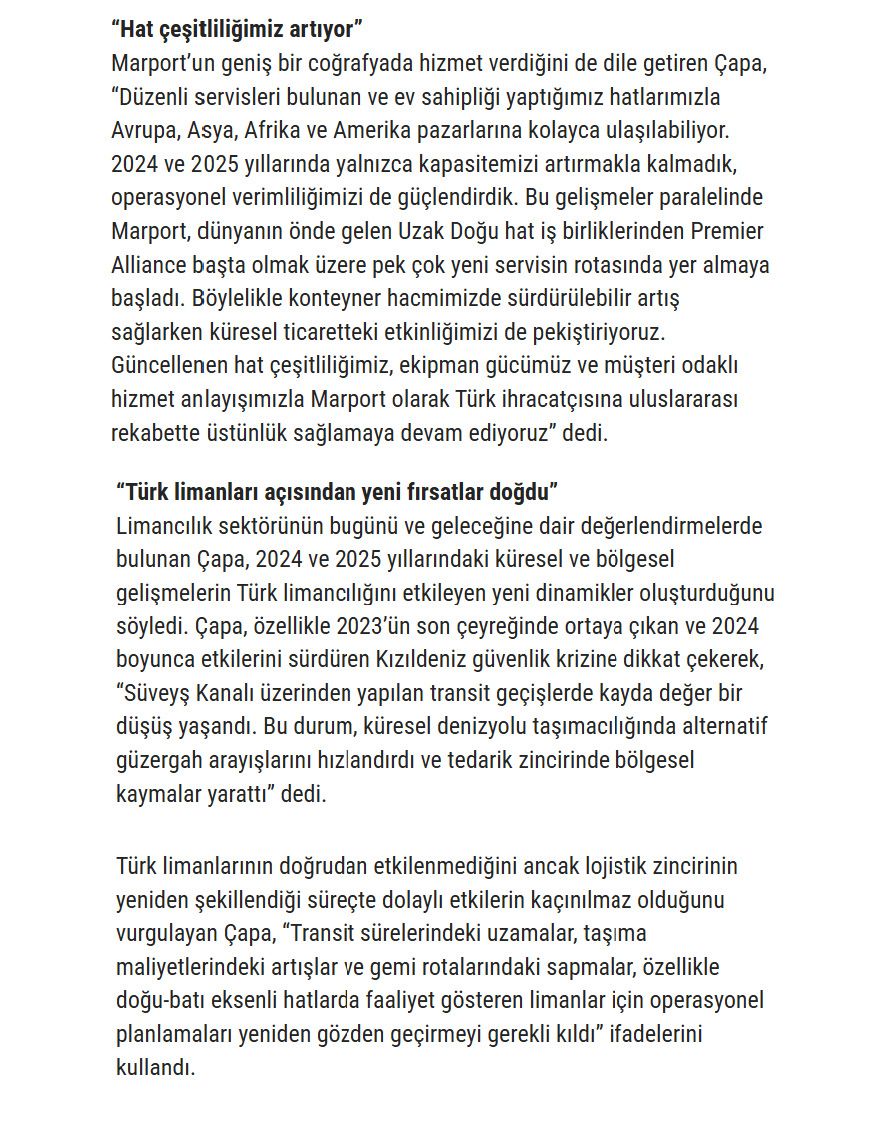 Marport, Küresel Lojistik Ağındaki Stratejik Rolünü Yeni Servisle Güçlendiriyor