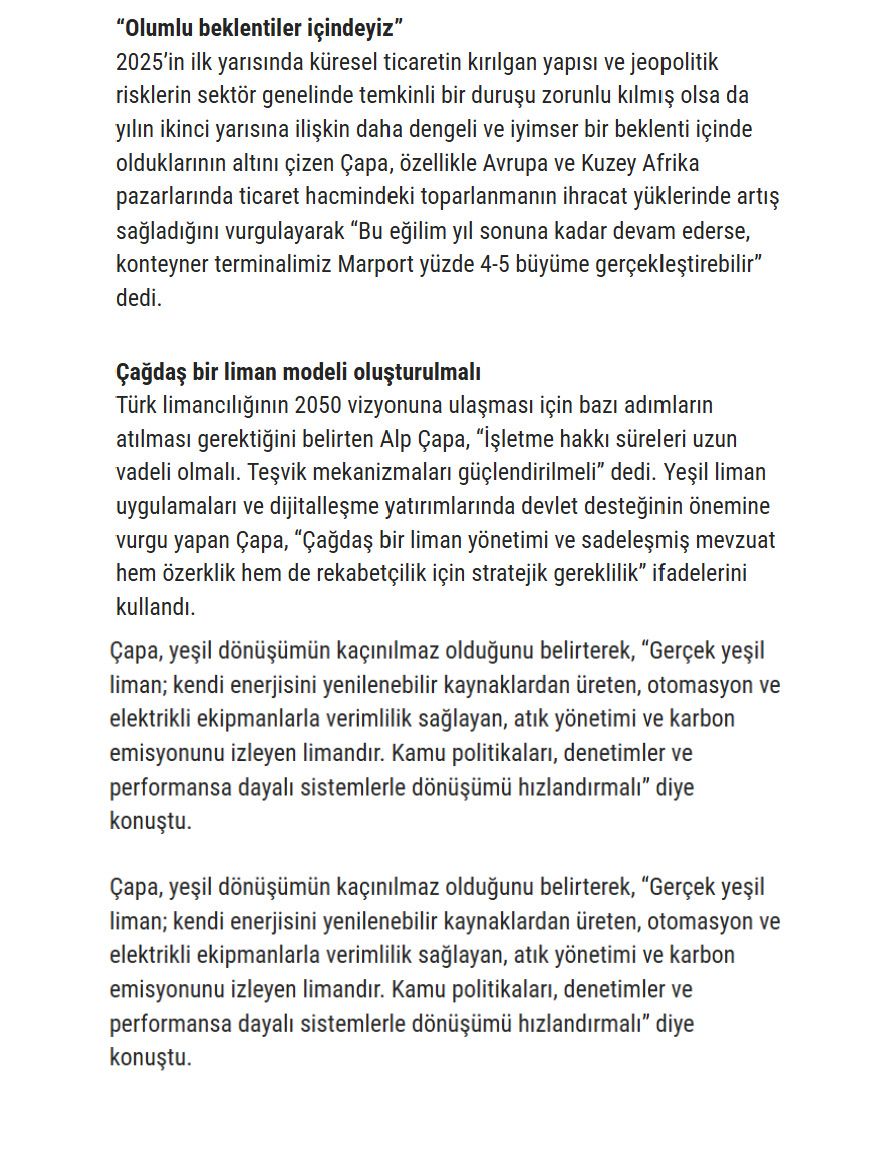 Marport Sürdürülebilir Ve Yeşil Limancılığa Odaklandı