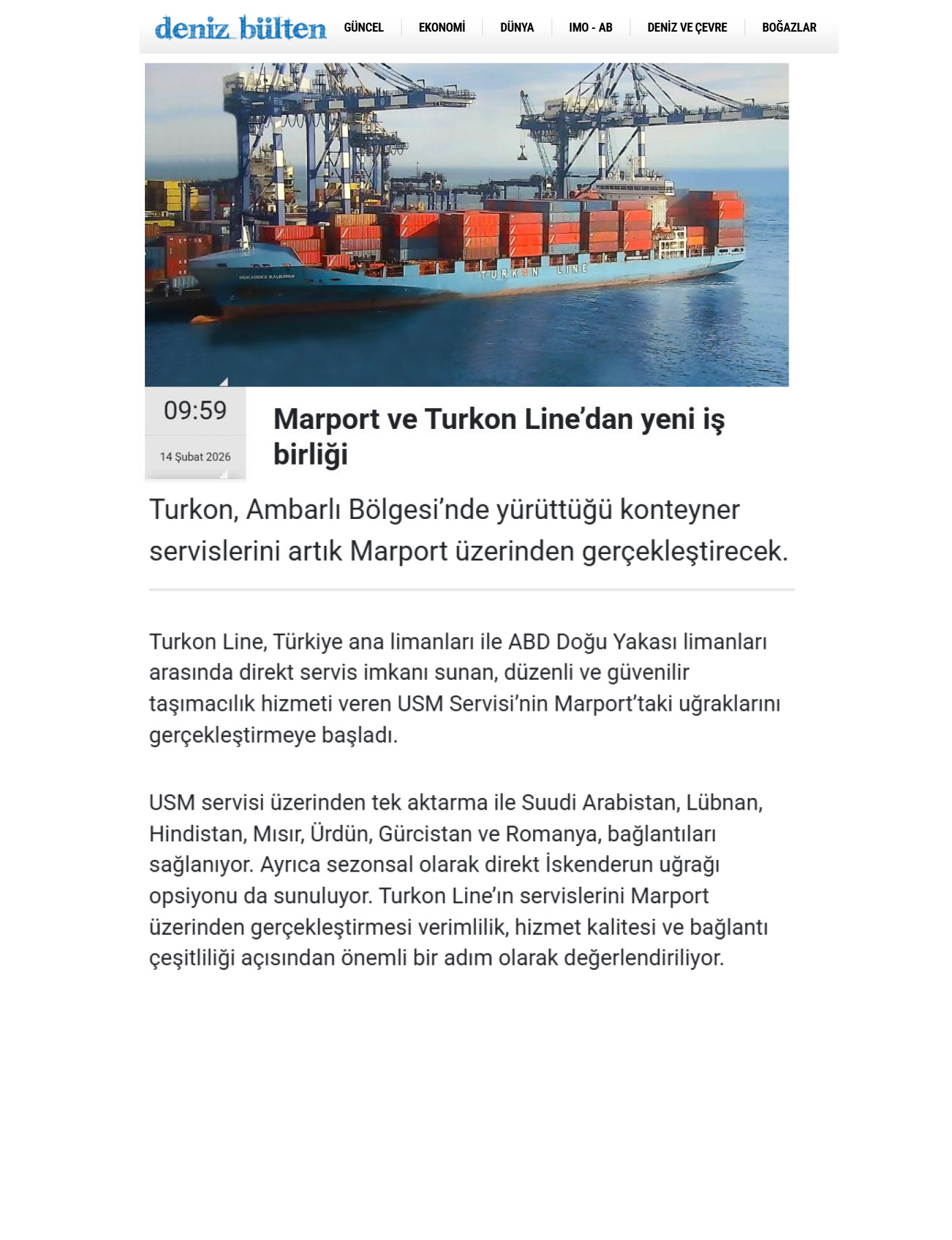 Turkon Line ve Marport'tan Operasyonel İş Birliği