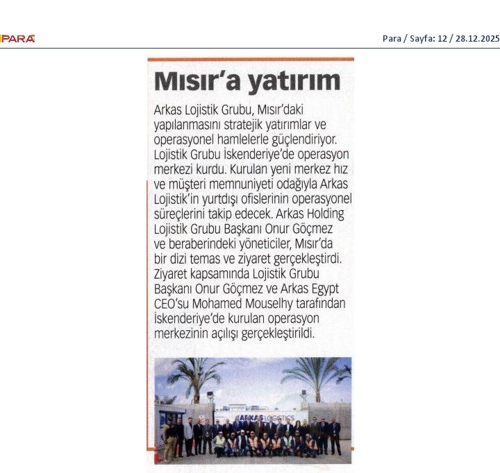 Arkas Lojistik Mısır'da Operasyon Merkezi Kurdu