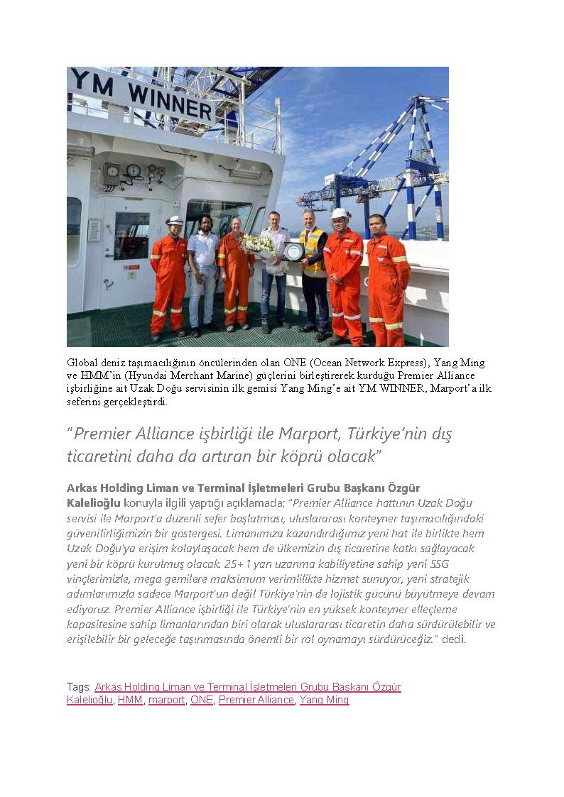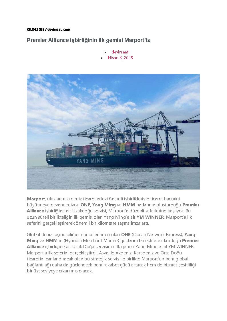 Premier Alliance iş birliğinin ilk gemisi Marport'ta
