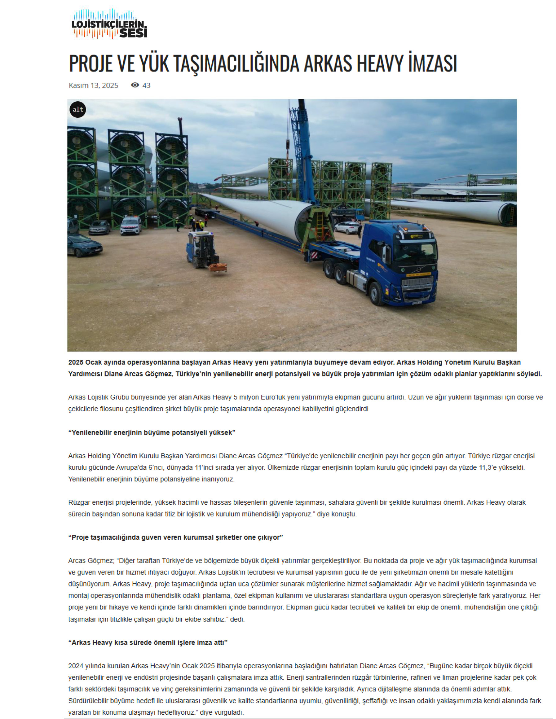Arkas Heavy, Yeni Yatırımlarla Proje Taşımacılığında İddialı