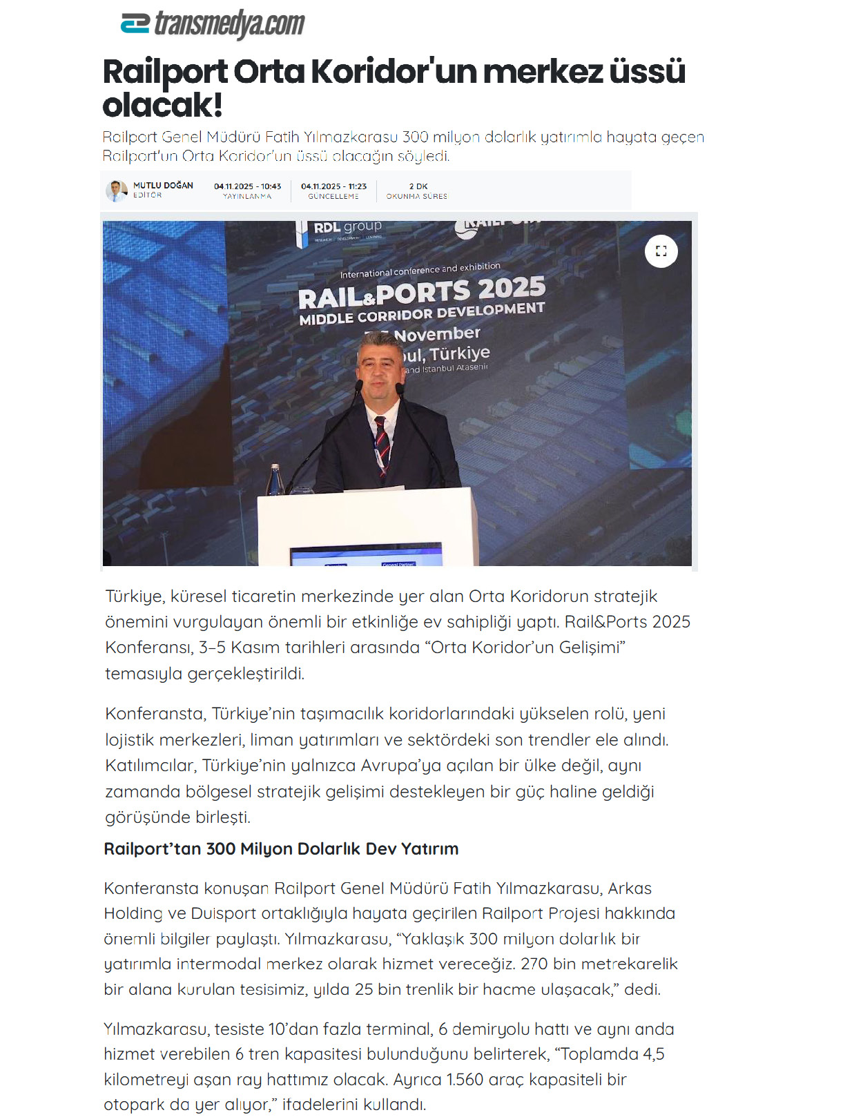 Railport, 2025'in İkinci Yarısında Operasyonlara Başlayacak