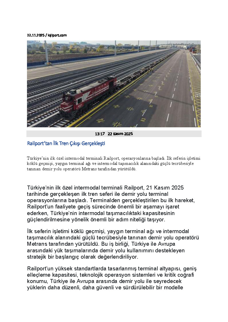Railport, 2025'in İkinci Yarısında Operasyonlara Başlayacak