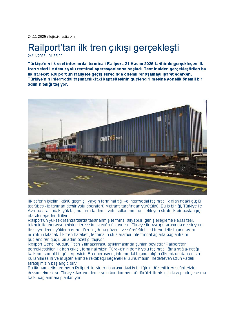 Railport, 2025'in İkinci Yarısında Operasyonlara Başlayacak