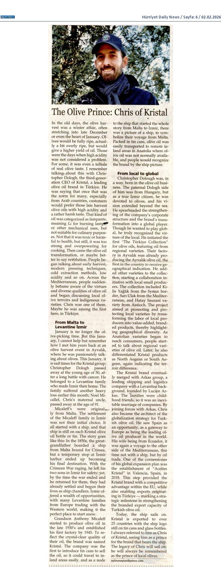 Türk Zeytinyağı Sektörünün Önemli İsmi Christopher Dologh Yaşamını Yitirdi