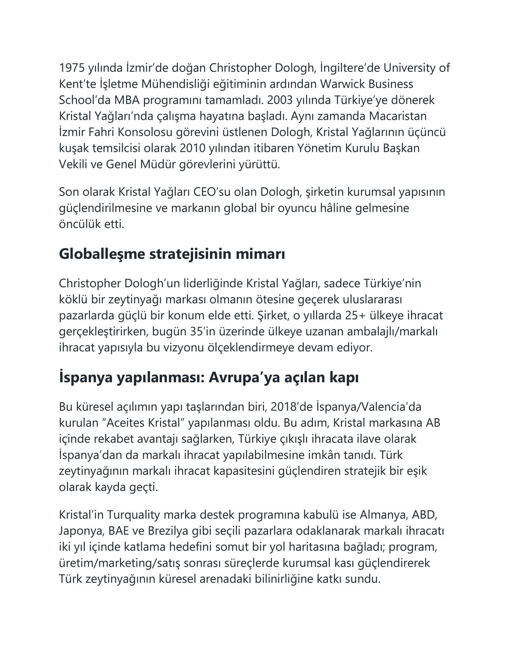 Kristal Yağları CEO’su Christopher Dologh Yaşamını Yitirdi