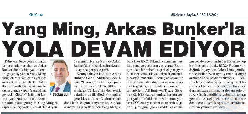 Yang Ming biyoyakıtta Arkas Bunker'la devam ediyor