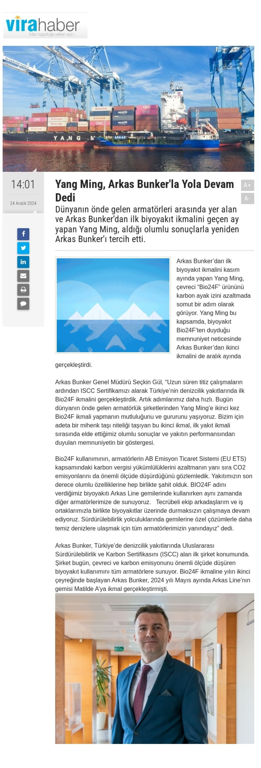 Yang Ming biyoyakıtta Arkas Bunker'la devam ediyor