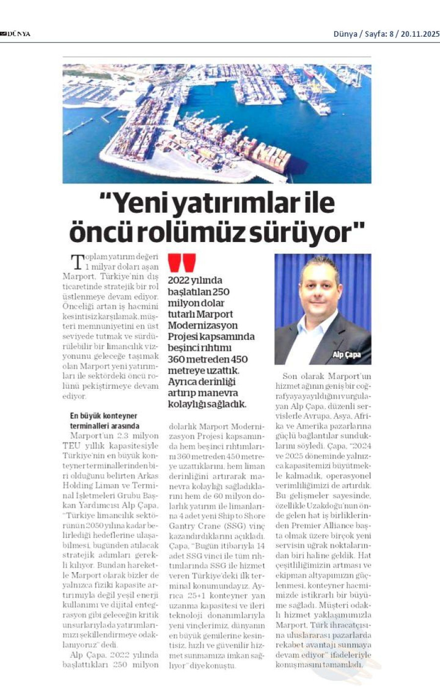 Marport uluslararası deniz ticaretindeki önemli iş birlikleriyle ticaret hacmini büyütmeye devam ediyor