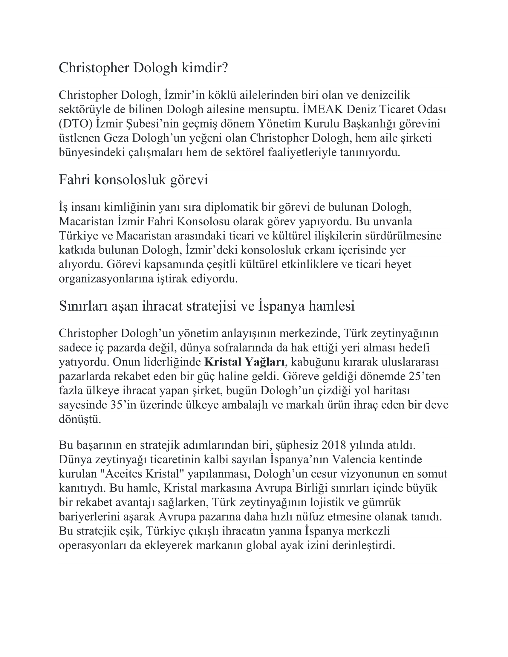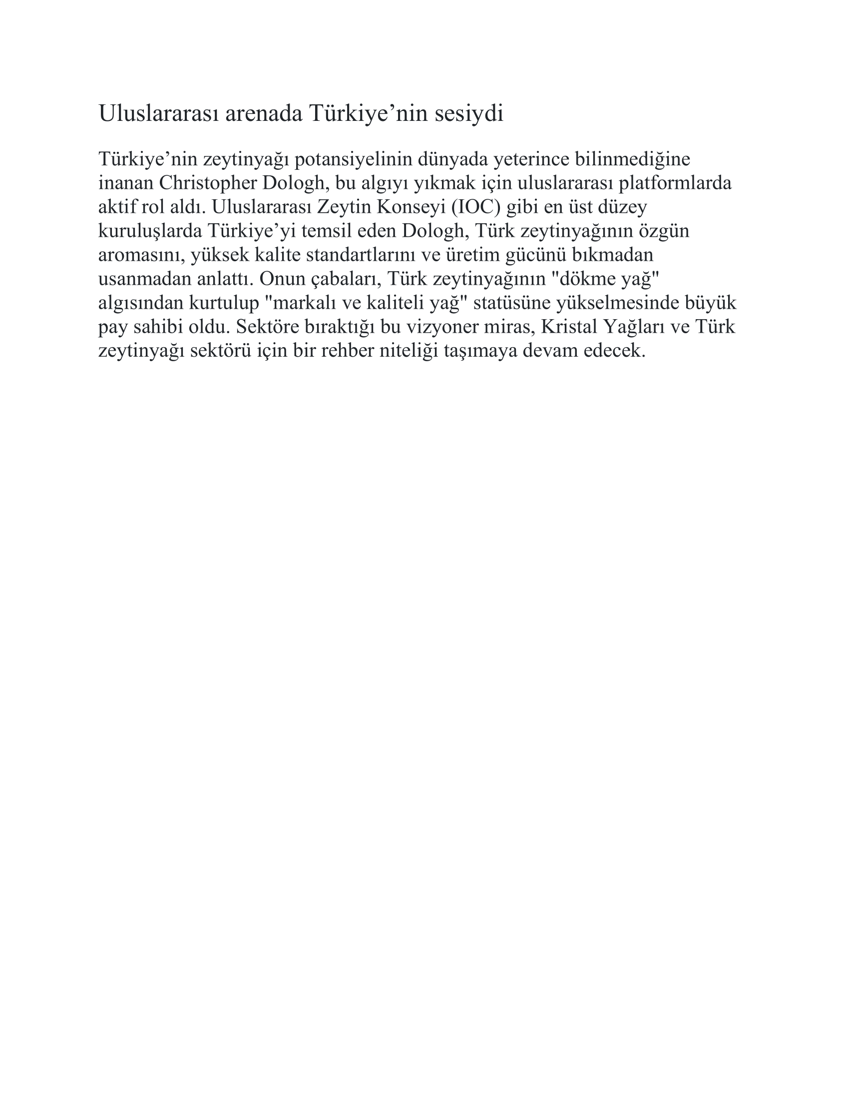 Kristal Yağları CEO’su Christopher Dologh Yaşamını Yitirdi