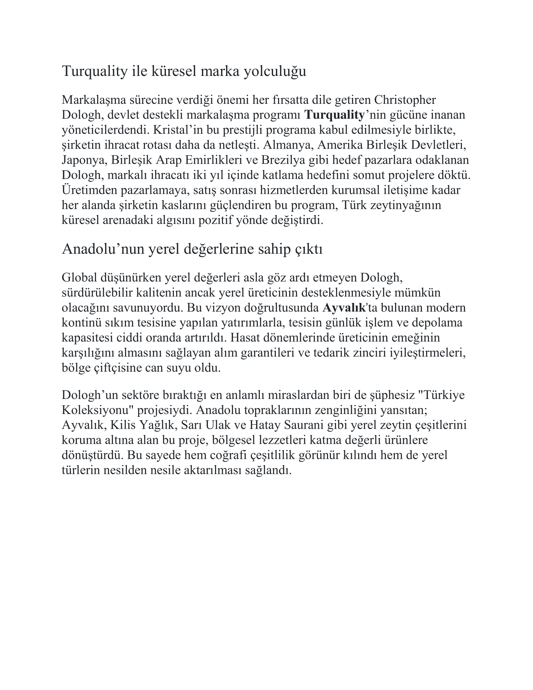 Türk Zeytinyağı Sektörünün Önemli İsmi Christopher Dologh Yaşamını Yitirdi